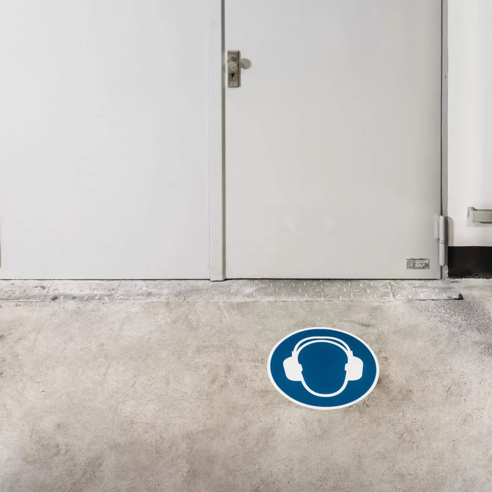 Biztonsági jel 'Fülvédő használata kötelező' Ø 430 mm