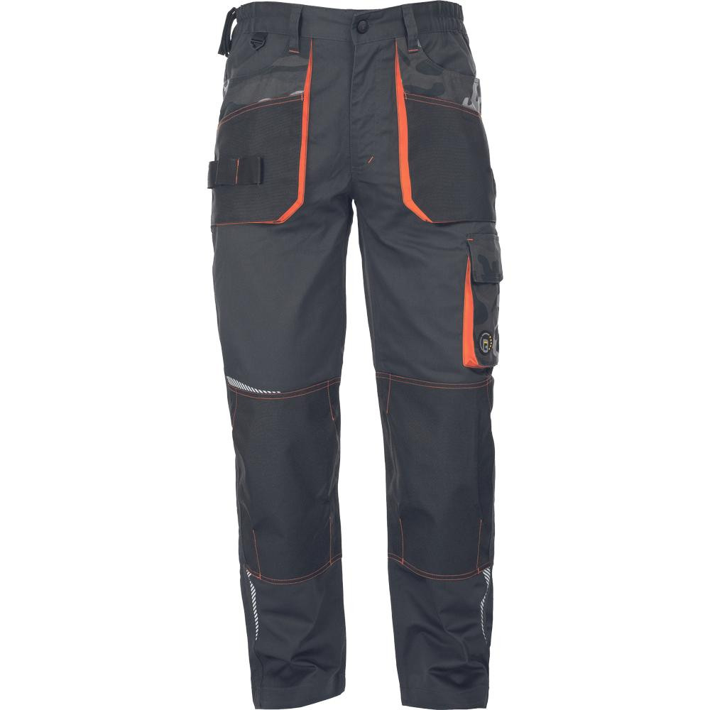 • férfi munkanadrág, rendkívül tartós rugalmas anyagból • elasztikus derékkal • multifunkcionális zsebek • Oxford 600D megerősített térdzsebek térdvédők behelyezéséhez • nyomtatott szegmensekre bontott fényvisszavető részletek • állítható szárhossz