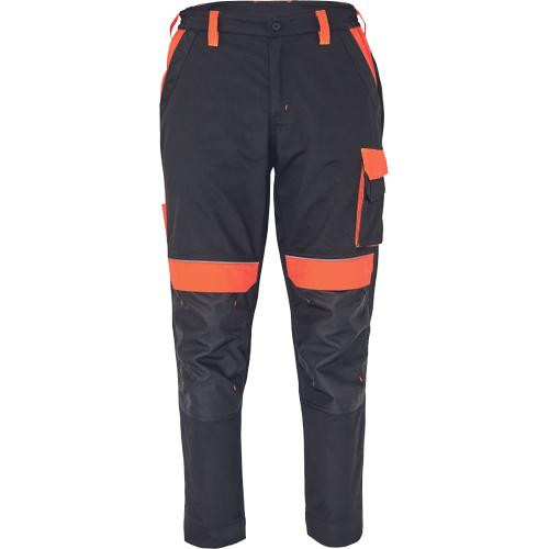 • férfi munkanadrág rugalmas derékkal • 2 első zseb, 1 dupla oldalzseb a bal száron • 2 hátsó zseb • 2 kis hátsó zseb a jobb száron • fényvisszavető szegés • Oxford 600D megerősített térdrész, térdvédőtartó • leengedhető szárak