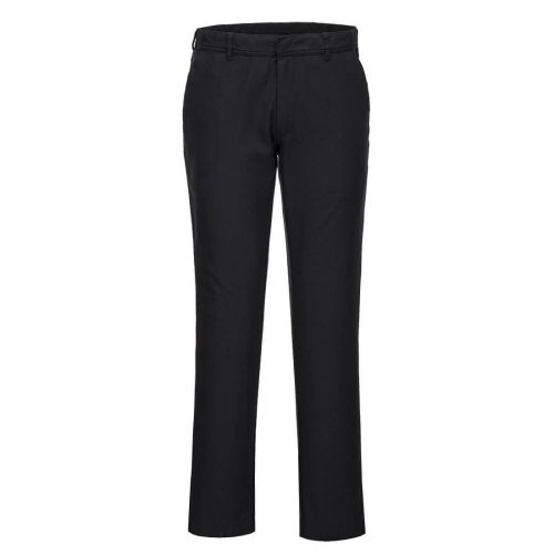 Ez a női slim fit stretch chino a tökéletes választás az uniformizált öltözékhez. Modern, slim fit szabású, dinamikus pamut stretch twill alapanyagból készült. A stretch szövet a legnagyobb kényelmet és mozgásszabadságot biztosítja. Jellemzői közé tartoznak az oldalzsebek, a hátsó gombos zseb és a derékon található kampók és pántos rögzítés. Rendkívül tartós, mindenhol ikeröltésekkel és szegéssel ellátva az összes stresszponton.
