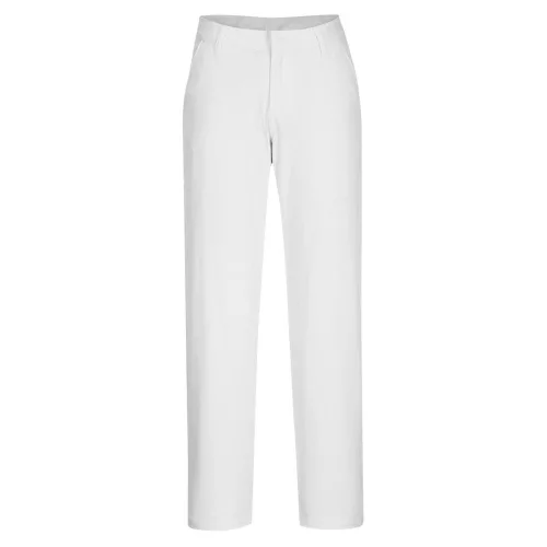 Ez a női slim fit stretch chino a tökéletes választás az uniformizált öltözékhez. Modern, slim fit szabású, dinamikus pamut stretch twill alapanyagból készült. A stretch szövet a legnagyobb kényelmet és mozgásszabadságot biztosítja. Jellemzői közé tartoznak az oldalzsebek, a hátsó gombos zseb és a derékon található kampók és pántos rögzítés. Rendkívül tartós, mindenhol ikeröltésekkel és szegéssel ellátva az összes stresszponton.