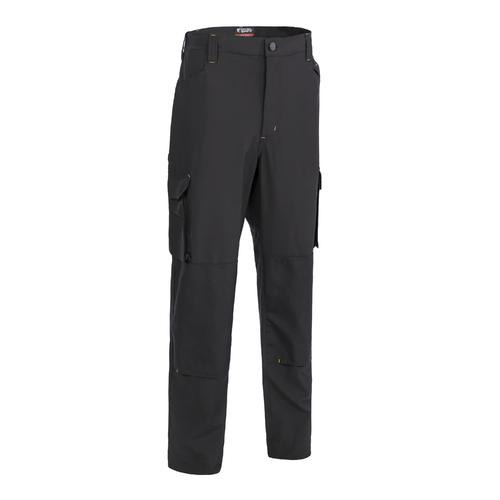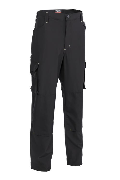 két fedett tépőzáras farzseb, két rávarrt tépőzáras fedett cargo zseb, kalapácstartó hurok, egy vonalzó zseb, egy háromrészes szerszámtartó hurok