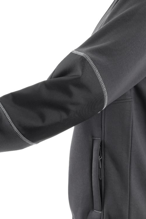 * az álló gallér tetejéig futó cipzár nyak- és állvédővel, Oxford alapanyagú megerősítés a könyöknél